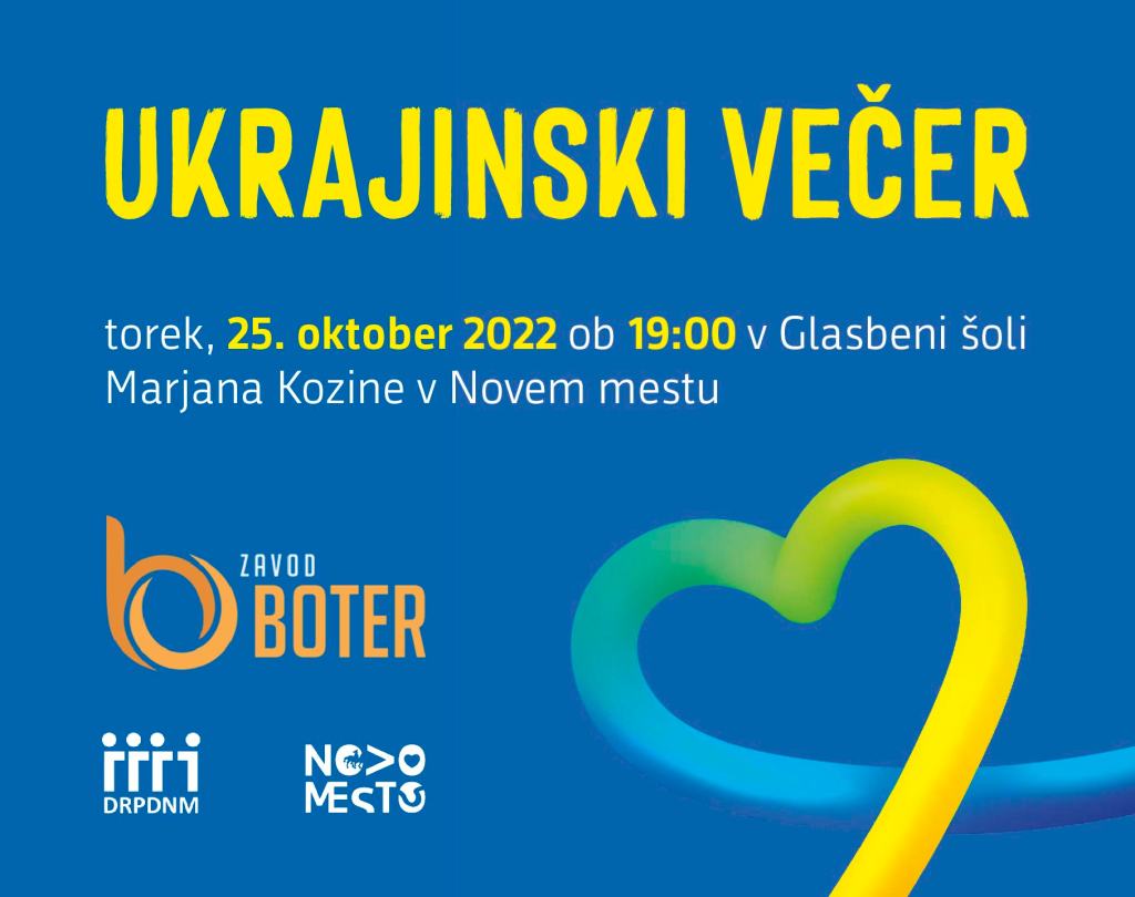 Vljudno vabljeni na medkulturni Ukrajinski večer, ki ga organizira Zavod Boter, in sicer v torek, 25. 10., ob 19.00 v Glasbeno šolo Marjana Kozine Novo mesto (koncertna dvorana).